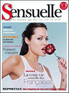 Dimanche, levée dès l’aube pour prendre mon train, j’erre dans le point Relais de la gare Montparnasse. Ma mission : m’acheter un ou plusieurs magazines pour mon voyage en train. Difficulté : élevée, j’ai pris le train 15 jours plus tôt et j’ai déjà lu Cosmo, Biba et Glamour. Non parce que les autres féminins ne me plaisent pas : entre les « on a 20 ans, on pète plus haut que notre cul » et les « déjà 35 ans, les gosses à amener à l’école et la ménopause qui approche », mon cœur balance. Alors que je m’étais faite à l’idée de pas lire de féminin dans le train, j’avise une photo d’Angelina Jolie en train de manger une pomme. Le numéro 1 de Sensuelle vient de sortir, voyons ça.
