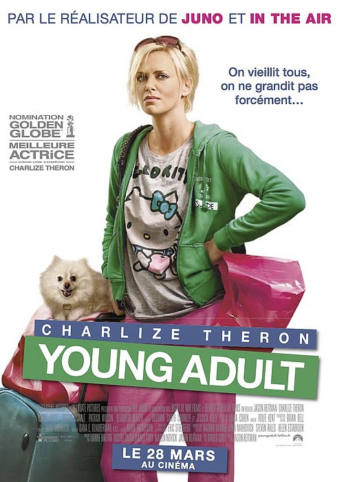 Young Adult, c’est l’histoire de Mavis Gary, auteure de 37 ans incarnée par Charlize Theron, qui a osé se mettre à nue pour ce rôle. Comprenez : elle a osé ne pas trop se maquiller, une performance incroyable. Oui, une actrice belle qui accepte de jouer sans trop de maquillage est époustouflante à chaque fois. Surtout que je rappelle pour info que notre amie Charlize a quand même joué dans Monster et là, elle reste quand même très belle donc déjà, l’argument sentait mauvais mais passons.