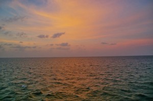 D’ordinaire, je voyage avec mes copines, ma famille ou mes clubs de plongée donc en gros, je me repose facilement sur la masse, je suis. Quand on part à deux, on se soutient : y en a toujours une pour guider l’autre, pour voir le bon panneau. Là, je partais seule, seule. Personne pour me dire que quand tu vas au Terminal 2A de Roissy, prendre le RER n’est pas une bonne idée (c’est juste à l’autre bout du monde). Personne pour me guider vers la bonne porte, des fois que je sois soudain victime d’une étrange dyslexie numérique qui me ferait confondre la porte 57 et la porte 75. Encore que Roissy, c’était facile. A l’aéroport de Muscat (Oman), j’ai moins rigolé : atterrissage à 7h du mat, heure locale… Soit 4h du mat parisien et je dois attendre 1h30. J’ai trouvé personne de mon groupe et je meurs de sommeil, je comprends rien aux annonces crachées dans le micro, j’écoute la musique sur mon iPhone en mettant un réveil pour être sûre de pas rater mon coup. Autant vous dire que je n’ai aucun souvenir du vol Muscat-Male qui a suivi (quasi 4h, je dormais déjà au décollage ou à peu près). Par contre, je me souviens très bien de mon arrivée à Male où je me suis dépêchée de passer à la douane de peur de passer en dernier et d’être oubliée par mes camarades. Je guettais la foule pour repérer où étaient ceux que j’imaginais être des futurs compagnons de galère (j’avais raison pour certains, tort sur d’autre. Notamment sur ce charmant garçon vu à l’aéroport de Male qui m’a soudain dégainé un guide de la Thaïlande. Crac mon petit coeur). Finalement, j’étais la 3e sur 19 à retrouver nos gentils encadrants.