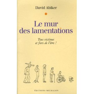La semaine dernière, je lisais Le mur des lamentations d’Abiker qui caricature le besoin que l’on a de se faire plaindre. Bon, je vous raconte pas le livre, lis-le, lecteur. Oui, il faut lire, ça détend, ça fait du bien et ça occupe dans le métro. Et dans le train, aussi. Et dans l’avion mais moi, je le prends pas, j’ai trop peur. Mais c’est pas du tout de ça dont je voulais parler ! Mais qu’est-ce que j’adore les digressions, quasiment autant que les métaphores pourries !