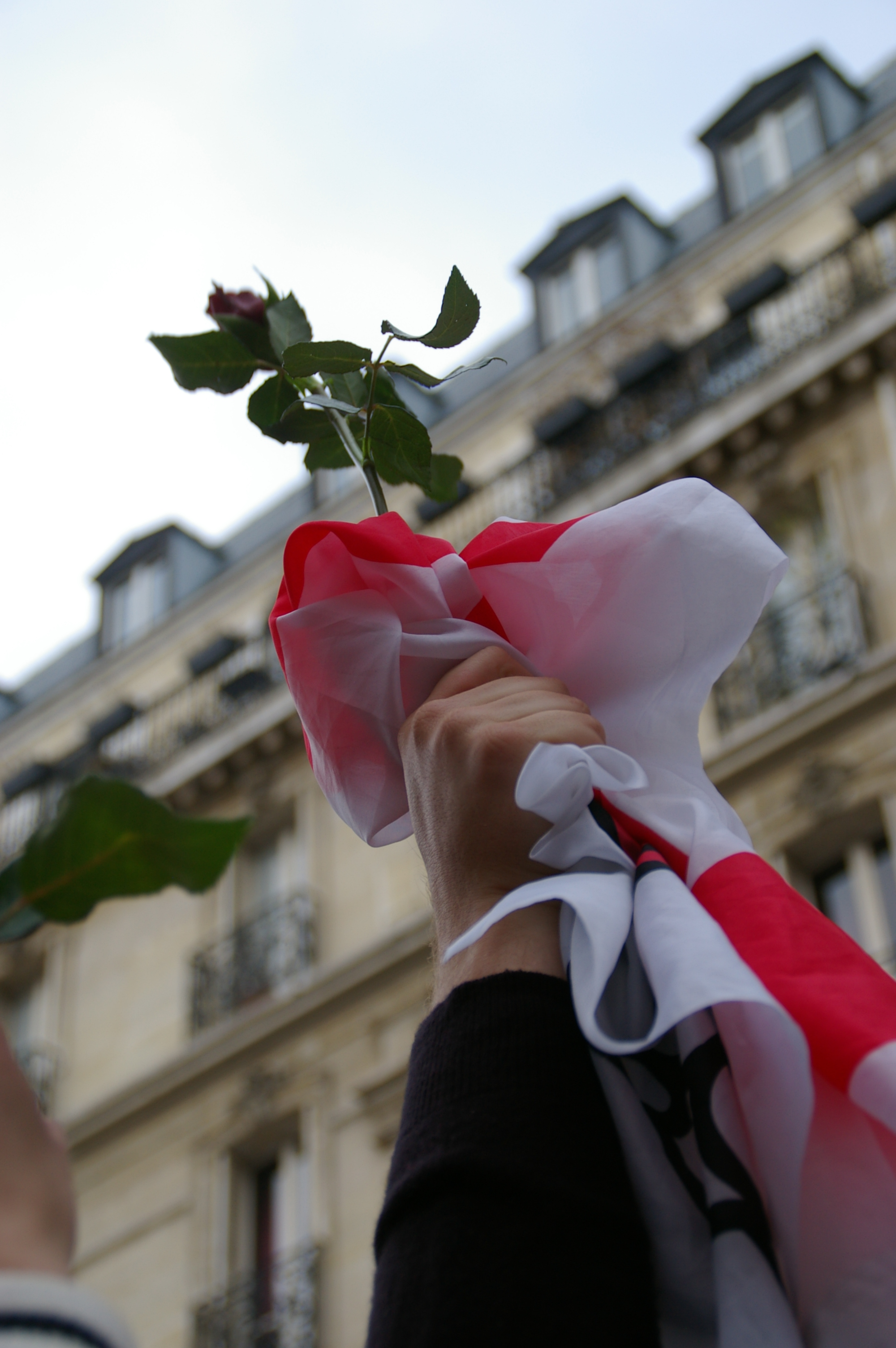Et tout ce monde se tient par la main. Des drapeaux de toutes sortes flottent : algériens, belges, corses, grecs, français, arc-en-ciel, PS, FDG, PRG (mon préféré)… (je ne les connais pas tous). Et tout ce petit monde se tient par la main… et chante la Marseillaise avec une ferveur que les fumigènes ne parviennent pas à dissimuler.