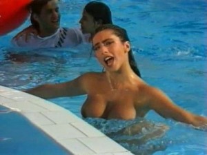 Le maillot une pièce semble être la tenue ad hoc pour la piscine : il soutient (voire comprime) ce qu’il a à soutenir et souligne votre silhouette de naïade (si, si, en rentrant le ventre et les fesses, on n’est pas loin de Jasmine Bleeth ou Carmen Electra. D’ailleurs, elles, elles avaient un maillot de bain sur mesure, cf Pamela Anderson qui faisait entrer son opulente poitrine dans un maillot taille S voire XS). Et puis surtout, c’est la tenue de la fille qui n’est pas là pour rigoler. Parce qu’il ne faudrait pas prendre par dessus la jambe l’activité sportive de votre future moitié : si vous pensez faire des longueurs en tenue de touriste et vous attirer les faveurs d’un nageur, vous vous trompez mesdemoiselles, permettez moi de vous le dire. Lui, il est là pour se défouler, pour dissoudre dans l’eau bleue l’éventuelle naissance d’une bouée ventrale. Et puis poussez vous du milieu de la ligne avec votre maillot à froufrous, vous allez lui faire perdre le rythme.