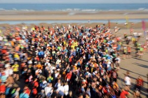 D’après ta description, et vu le nombre de participantes, les différences de rythmes et le mélange course – marche, je ne pense pas qu’il y ait trop le choix pour le départ, à moins de vraiment risquer pour le confort et la sécurité des participantes, ce qui est quand même primordial pour ce genre d’épreuve.