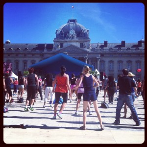 Voilà, c’est fait. On met deux heures à récupérer divers paquets, à ressortir, la chaleur est terrible, je sens mes pieds enfler dans mes baskets. On doit retraverser tout le champ de Mars pour reprendre le métro au Trocadéro. Plus on avance, moins on parle. Claquées. Alors, je le referai ? Heu ben non, je pense. J’aime marcher vite, je le fais régulièrement et c’est sympa de marcher dans des rues habituellement pleines de voitures mais quand tu penses que le plus fatigant, c’est d’attendre le départ, ça motive pas trop. Par contre, l’ambiance est au top. Et je retiens une chose essentielle : le jogging, j’aime VRAIMENT pas.