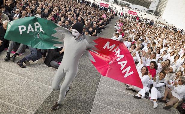 J’en parlais l’autre jour sur Twitter avec un twittos m’expliquant que le problème pour lui ne venait pas du mariage ou de l’adoption mais que les gens contre avaient avant tout peur du changement (lui-même n’est pas contre, hein, il cherchait juste à expliquer, essayer de comprendre). Peur de perdre les valeurs structurantes de la société. Ah oui mes petits lapins mais la société évolue, c’est comme ça. Reprenons l’évolution des sociétés de façon extrêmement grossière : chez les Grecs, un éphèbe qui ne faisait pas sodomiser par un homme plus mature n’était pas un vrai homme. Oui, la virilité passait par une initiation sexuelle par un homme mûr. Au Moyen Age et à la Renaissance, on décapitait, pendait, écartelait à tour de bras. Il n’était pas rare qu’on prononce des sentences hallucinantes :pendaison puis dépècement puis immolation. Bon, là, le mec était archi mort. Vous trouvez qu’on aurait dû en rester là ? Il y a 30 ans, la peine de mort existait encore. Il y a 30 ans, l’homosexualité était officiellement un délit(même si ce n’était plus sanctionné depuis belle lurette). Lors de la 2nde guerre mondiale, les homos devaient arborer un triangle rose et étaient déportés comme les juifs. Vous trouvez ça bien ? Vraiment ? Ou ça vous gêne un peu quand même ?