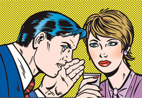 J’ai fréquenté plusieurs boîtes dans ma longue carrière (ouais, j’ai passé les 6 ans, pif paf !) et Dieu seul sait que les rumeurs sont un composant essentiel des relations entre collègues. Pas seulement pour les histoires de fesses, d’ailleurs, on aime se parler de qui a dit du mal de qui, qui est sur la sellette… Je me souviens de la terrible histoire de la gifle chez TGGP. Une femme arrivée peu de temps avant a été licenciée en période d’essai. Rien de bien incroyable en soi sauf qu’il se disait que son licenciement était lié à une altercation avec l’éditrice de TMF et qu’il y aurait même eu tentative de gifle sur l’employée désormais indésirable. Evidemment, la rumeur a gonflé, la baffe était devenue réelle. J’ai eu enfin le fin mot de l’histoire par l’éditrice censément agressée qui nia l’histoire de la baffe (mais l’altercation au sujet d’une place de parking était, elle, bien réelle. Un emploi tient parfois à peu de choses). On se partage les rumeurs échangés à voix basse à la cantine, à la pause clope ou à la machine à café, penchés les uns vers les autres tels des conspirateurs. Parce que savoir (ou penser savoir), c’est le pouvoir. C’est montrer qu’on est bien placés, qu’on connaît les bonnes personnes.
