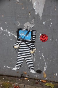 Donc l’art. Ce film nous questionne sur notre rapport à l’art pour commencer. Ce que j’aime sur le street art, c’est son côté accessible, signifiant et éphémère. J’aime les space invaders, j’aime certains graffs, à partir du moment où ils ont une signification (donc pas ceux comportant des noms tracés de façon dégueulasse à la bombe). J’aime le travail de Banksy sur le mur de Palestine et la force de ce que ça représente. Ce documentaire a un incroyable effet poil à gratter : dans un premier temps, on découvre tout un tas de doux dingues qui font les choses avant tout par passion, par envie. Thierry filme tout ce qui bouge car il aime filmer, les street artists veulent diffuser un message, ils ont un projet, ils veulent un peu secouer les consciences. Jusque là, tout va bien.