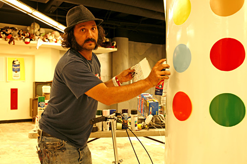 Bref, le docu nous offre une plongée dans le monde du street art filmé par Thierry Guetta, un doux dingue français qui vit un peu en dilettante et qui a une passion : la vidéo. Il filme tout, tout le temps, sans jamais s’arrêter. Un été, il filme son cousin, un street artist qui colle des space invaders partout dans Paris. De retour aux Etats-Unis où il vit, il rencontre Shepard Fairey, un street artist collant sur les murs une immense affiche « obey » puis d’autres street artists qu’il filme et aide à faire leur art. Puis un jour, il rencontre le grand Banksy. Il filme, il filme et Banksy lui demande de réaliser un film sur le street art. Il en sort un « truc », Life remote control, 1h30 d’images en mode stroboscopique comme si un épileptique faisait une crise, la télécommande à la main. Banksy se dit donc « on va récupérer les images et occuper Thierry pour pas qu’il s’en rende compte ».Banksy conseille donc à notre french guy de tenter lui même l’aventure de l’art. En quelques mois, Thierry devient Mister Brainwash et devient un artiste prétentieux copiant-collant en détournant à peine le boulot de ses copains street artists et vendant ses « oeuvres » réalisées par d’autres à des prix délirants tout en expliquant que « ben, moi, j’ai l’idée, eux, ils font la réalisation ». A la fin du film, on est partagés entre la sympathie qu’on avait pour Thierry en début du film et l’antipathie qu’inspire Mister Brainwash et sa prétention sans nom.