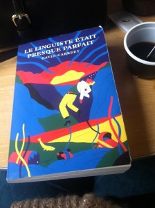 Après l’Everest Ulysse, j’avais besoin d’un peu de légèreté. En novembre, lorsque je descends pour le baptême de mon neveu adoré, je trouve un livre posé en évidence dans ma chambre chez mes parents « le linguiste était presque parfait » de David Carkeet . Tiens, si ma maman m’a laissé ça là, c’est qu’elle doit penser que je vais aimer.