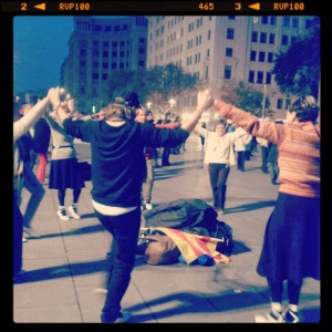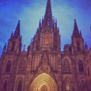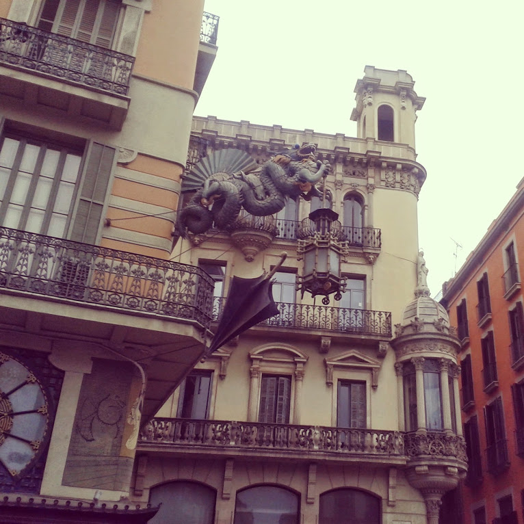 Après une pause cappucino, chocolat chaud, nous voici reparties à l’aventure, un petit tour chez Zara, on enchaîne Le barro gotico, la cathédrale avec des danseurs de Sardane devant, on remonte jusqu’à Passeig de Gracia avec la Casa Battlò puis on termine à Gracia dans un resto bio terriblement bon avec une serveuse géniale qui parlait très bien français, nous offrant ainsi le dialogue suivant : « bon, je vais prendre ce cocktail » « non, tu veux pas prendre ça, non » « Heu, celui là alors ? » « Non, tu veux pas non plus, c’est pas bon » »Bon alors si je veux boire du vin rouge, par exemple, je veux quoi ? » « Celui là est très bien ». Ouais, j’avoue, il est très bien.