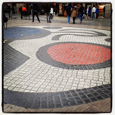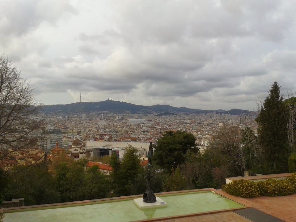 Le lendemain, comme il fait toujours beau, on joue de prudence et on file à la plage en profiter un peu. Quelques orteils dans l’eau, une petite sieste sous le soleil exactement. Je veux apprendre l’espagnol et venir vivre ici. Bon, par contre, se reposer sur la plage devient un véritable défi tant on est emmerdées toutes les deux minutes car des vendeurs de boissons ou des nanas TRES insistantes qui veulent nous faire des massages. Mais laisse moiiiiiiiiiiiiii ! On remonte ensuite vers le port pour nous rendre dans le quartier de la Ribera, pas loin du barrio gotico pour un nouveau déjeuner en terrasse avec un poisson hyper frais et une tartine d’un espèce de pâté poivron-tomate à se damner. Puis on repart sur Montjuic pour visiter la fondation Mirò. Alors autant vous le dire, je suis pas du tout un cador de l’art contemporain, j’essaie de garder une certaine neutralité, de ne pas rejeter le truc d’emblée mais globalement, Mirò, j’ai du mal à saisir… A la fin, ça finit à la blague « c’est quoi, ça, tu penses ? » « Oh bah comme d’hab, une femme, un oiseau, une étoile ». Le seul truc qui me parle, ce sont les titres un peu surréalistes qu’il donnait à certaines de ses oeuvres, à mi chemin entre écriture automatique et Kamoulox. A noter cependant la jolie vue sur Barcelone en direct de la terrasse.