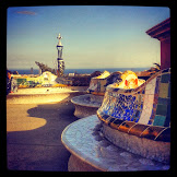 Après un panini avec de la charcutaille espagnole, du fromage espagnol et des patatas bravos avec ailloli (écrit comme ça, oui), on se rend au Parc Güell. Pour ceux qui ne connaissent pas, c’est assez compliqué à décrire. A la base, il s’agissait d’une cité jardin sur les hauteurs de Barcelone mais seules 3 maisons furent construites. Edifié par Gaudì, figure de proue du modernisme catalan, c’est…comment dire… ca pourrait ressembler à des maisons conçues sous acide. Et j’adore. J’ai un amour un peu particulier pour l’architecture espagnole et son côté mi tarte à la crème mi grandiloquent. Du coup, le parc Güell et son étrangeté me séduisent, je mitraille le moindre bout de céramique. Ajoutez à ça le temps magnifique et je suis aux anges. On finit la journée par un petit dîner pépère dans un resto conseillé par notre hôte AirBnB avec des calamars ultra frais et du risotto à l’encre de seiche (ma grande passion) et je suis tombée amoureuse de Barcelone.