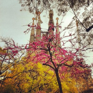 Le lendemain, la météo est plus morne, nous allons donc nous faire plein de visites avec, en tête : la Sagrada Familia. C’est ainsi que nous avons perdu la matinée. Comme une fatiguée du neurone que je suis, je pense pas 30 secondes qu’on pourrait réserver les billets sur Internet (alors que j’avais tenté de le faire pour le Musée Rodin quelques jours plus tôt) et nous voici à la fin d’une titanesque queue qui fait pas le tour du bâtiment, certes, juste la moitié. Une demoiselle vient rapidement nous voir « oui, alors voilà, les caisses sont fermées jusqu’à midi donc vous feriez mieux d’acheter vos places sur Internet, les points wifi sont là, là et là. Merci bisous ! ». Ok, il est 10h23, on va donc jouer la carte de l’Internet. Sauf que mon nouveau téléphone acheté 3 francs 6 sous n’a pas envie de bosser et celui de Zeno ne veut pas valider le paiement. Ok, on joue notre dernière carte : on rentre dare dare à l’appart (20 mn marche) pour tenter le coup sur ma tablette. Ouiiiiiiiiiii ! Bon vu qu’on a pris des places pour 14h, allons nous restaurer sur la petite place d’à côté, recouverte de pollen. Mais manifestement, je suis pas allergique au platane, en voilà une bonne nouvelle !
