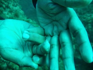 Point de poisson mais des vers en pagaille par contre. Du doris dalmatien en veux-tu en voilà, de la jolie flabelline, le festival du nudibranche. Du coup, j’ai commencé à chercher au lieu d’attendre que notre encadrant nous en montre et je peux vous dire que j’ai sacrément progressé même si mes deux plus belles découvertes (un petit crabe et un nudibranche) sont dues à des accident (un, j’ai vu bouger, l’autre je regardais l’anémone ou je ne sais quoi à côté). On a aussi eu de jolis cnidaires et de gros Bernard l’Hermite squattant tranquille de gros coquillage.