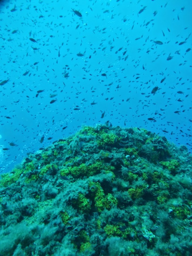 Nous voici donc à Tabarka dont je vous ai déjà présenté la vie sur marine. Dès le lendemain de notre arrivée, nous voici sur un petit bateau de pêche avec un matériel un peu daté, prêts à nous enfoncer dans les eaux azur méditerranéennes. Bonne nouvelle : les sites de plongée ne sont jamais très loin, environ 10 mn de navigation et pas mal sont au pied du joli fort gênois.