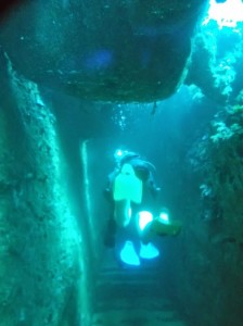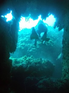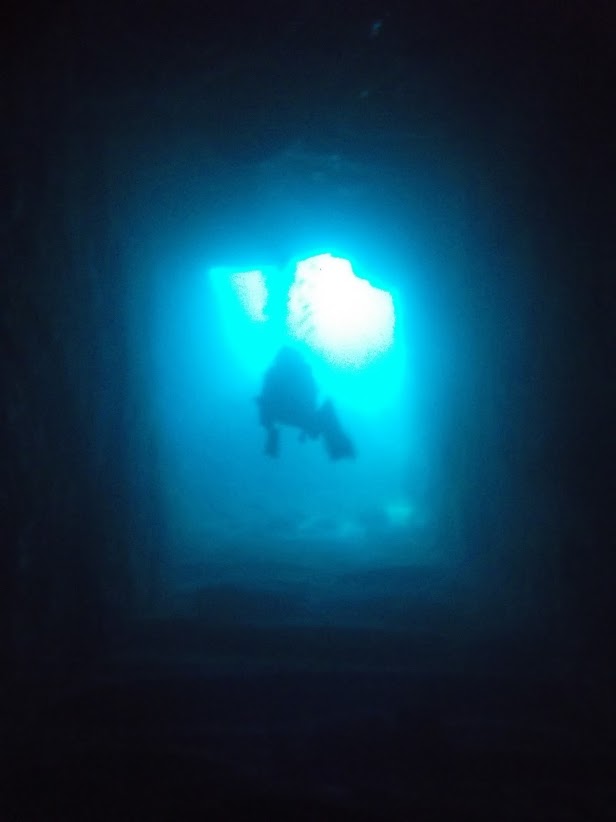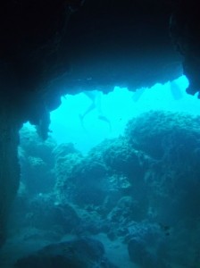 Mais le mieux du mieux des plongées à Tabarka, ce sont les tunnels. La plongée des tunnels se fait dans une zone où les rochers sont littéralement creusés. Au début, t’as un peu les chocottes, il fait sombre, il fait froid mais très vite, tu trouves ça incroyable; Parce que mine de rien, la nature faisant bien les choses, tu as l’impression de passer dans des couloirs taillés par l’homme, de voir des marches… Bref, tu es Indiana Jones sous l’eau, tu découvres une cité engloutie. Et ça, on l’a tous ressenti et trouvé ça tellement génial qu’on a demandé à la refaire. Rien que pour cette plongée là, je vous jure, aller à Tabarka, ça vaut le coup.