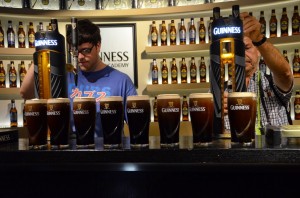 Après la fabrication, on a droit à un étage consacré aux pubs Guinness puis un autre sur le côté hyper international, des fans à travers le monde, youpi. Des écrans interactifs nous permettent de partager notre visite sur les réseaux sociaux ou tester notre connaissance de l’alcool (pas fait car écrans super squattés). Clou de la visite : la Guinness Academy où vous apprenez à tirer votre propre Guinness et tu peux la boire après. J’ai donc passé mon tour et pris des photos d’Anaïs en train de s’appliquer (elle a réussi à tout bien faire).