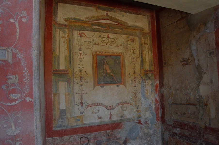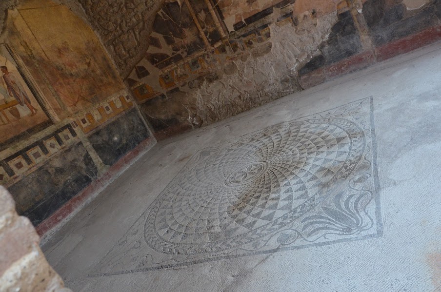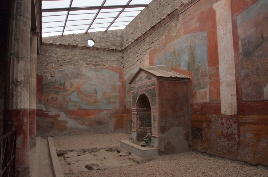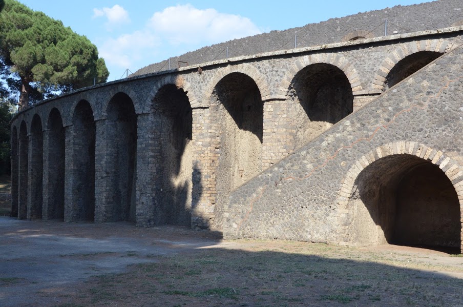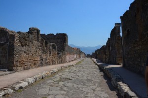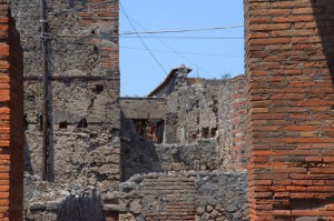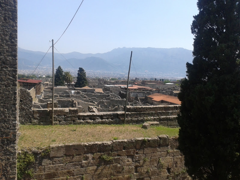 Si le travail de reconstruction reste assez visible dans les « rues », l’impression de majesté demeure. Chaque coin de rue est une surprise, une petite maison où l’on devine les escaliers, le péristyle, un bout de chambre… On se balade dans les poumons économiques et sociaux de la ville. Une expérience assez étrange et émouvante, on sent dans cette ville où le temps s’est arrêté tout le drame qui l’a frappée de plein fouet. On lève le nez vers le calme Vésuve… La même vue que les Romains de l’époque.