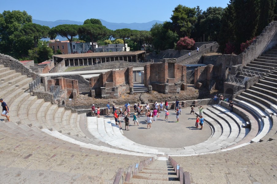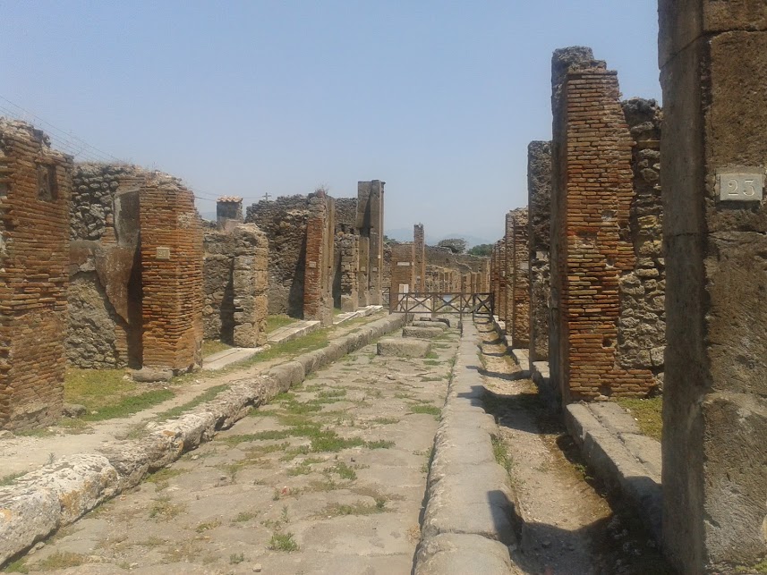 Quand nous avons choisi nos vacances avec Victor, on a cherché à se concocter un petit cocktail « soleil et vieilles pierres ». Parce que, oui, je kiffe les vieilles pierres, j’aime me perdre dans les vestiges d’une vieille civilisation, essayer de m’imaginer en ces temps reculés, déambulant sur le site. Et niveau imagination, on fera difficilement mieux que Pompéi comme site archéologique.